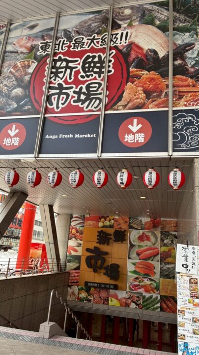 青森駅ロータリー先の建物の地下(Google Mapで徒歩3分)に市場があり